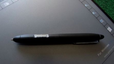 W nasze ręce trafił model G-Pen F610, podłączany do portu USB tablet z bezprzewodowym piórkiem. Obszar roboczy tabletu wynosi 253 x 158 mm, czułe na nacisk piórko jest w stanie rozróżnić 1024 poziomów nacisku. Rozdzielczość z jaką tablet odczytuje pozycje pióra wynosi 2000 linii na cal. Sam tablet zbiera dane z piórka z prędkością 125 próbek na sekundę. Całkiem przyzwoicie.