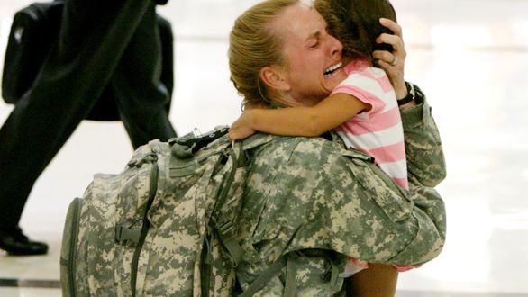 Na zdjęciu obok: kapitan Terri Gurrola po powrocie z Iraku, witająca się na lotnisku z córką, której nie widziała przez siedem miesięcy.