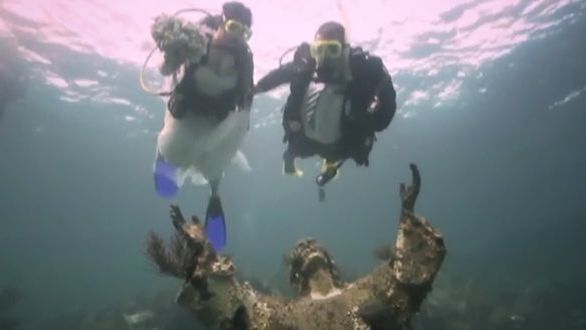 Podwodny ślub pod posągiem Jezusa