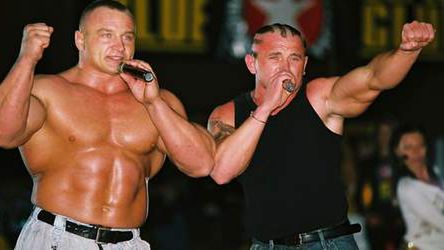 SZKOŁA PSYCHOPATÓW, czyli dobijanie leżącego Inicjatorem tej muzycznej sensacji jest Krystian, najmłodszy z braci Pudzianowskich. Ma 26 lat i jest człowiekiem o wielu talentach. Jeszcze parę lat temu uchodził za dobrze zapowiadającego się piłkarza. Grał w IV-ligowym klubie „Białka” jako prawy obrońca. Później – za przykładem brata – występował w lokalnych zawodach StrongMan, ale nie przebił się do krajowej czołówki. Równocześnie doskonalił swój wokal, nawiązywał kontakty w świecie muzycznym, budował repertuar. Krystian jest samoukiem, nigdy nie chodził do szkoły muzycznej. Ale śpiewał coraz lepiej, występował na imprezach w całym kraju. I przez cały ten czas uparcie namawiał Mariusza do wspólnego występu na scenie.