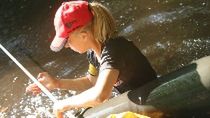Gdy rozgrzały się już mięśnie i szare komórki przyszedł czas na pływanie. Najpierw wzdłuż pomostu. Potem utrzymywanie się na powierzchni z drewnianym klockiem w obu rękach.