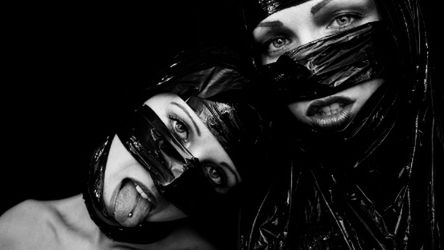 Za nią powłóczy nogami mężczyzna. Jest sporo niższy, mimo butów na kilkucentymetrowym koturnie, i dużo bardziej tajemniczy, bo obcisły czarny lateks, który przylega do niego jak druga skóra, zakrywa wszystko, od twarzy po kostki. Spod ciasnej maski widać jedynie usta i oczy. Z czarnymi soczewkami w oczach przypomina demona.